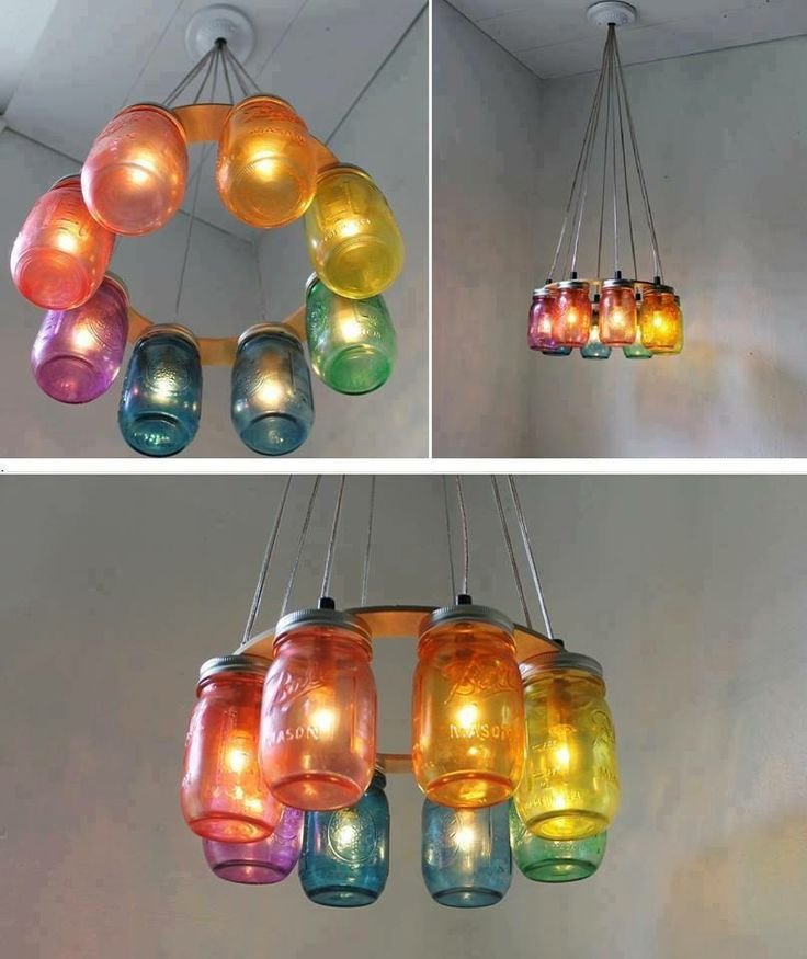 + Free ShippingLámpara de techo realizada con vidrios provenientes de desuso y otros materiales de desecho. Pintada con esmaltes ecológicos.